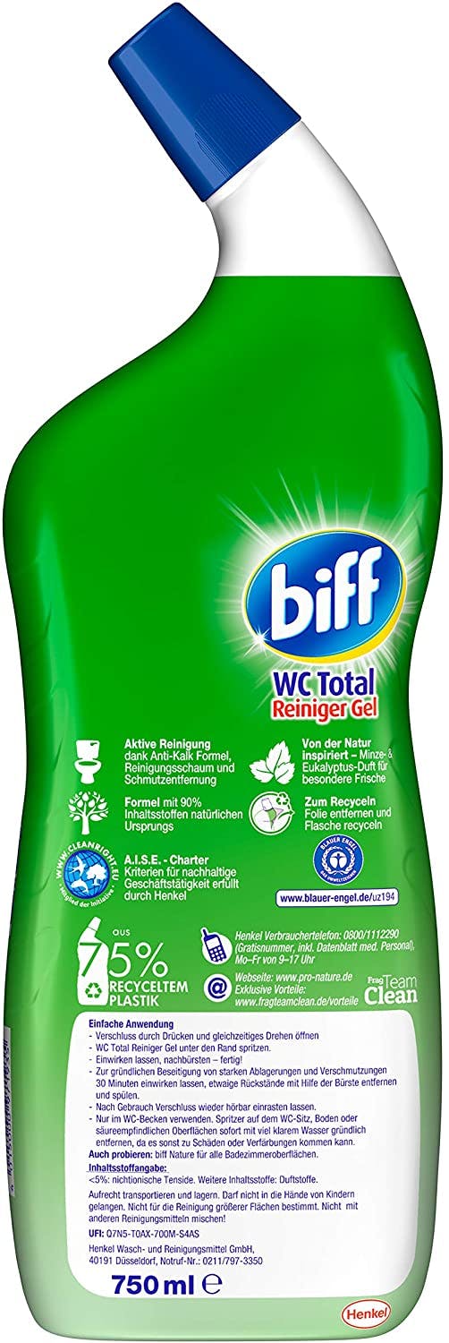Biff wc total reiniger gel pro nature mint eukalyptus duft: Mit starken marken, innovationen und technologien hält das unternehmen. Die selbstaktive formel wirkt sofort nach dem auftragen und entfernt mühelos kalk und urinstein. Wc total reiniger gel spritzige limone wc total reiniger gel frühlingsblüte Biff wc total reiniger gel spritzige limone 1.2.